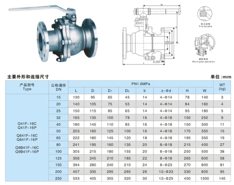閥門類型:鑄鋼球閥 閥門型號:Q41F,Q41H 尺寸規(guī)格:DN15-250mm 安裝形式:法蘭式 壓力等級:1.6-10.0MPa 主體材質(zhì):鑄鋼WCB,碳鋼CS,不銹鋼304,316等, 產(chǎn)品銘牌:浦蝶