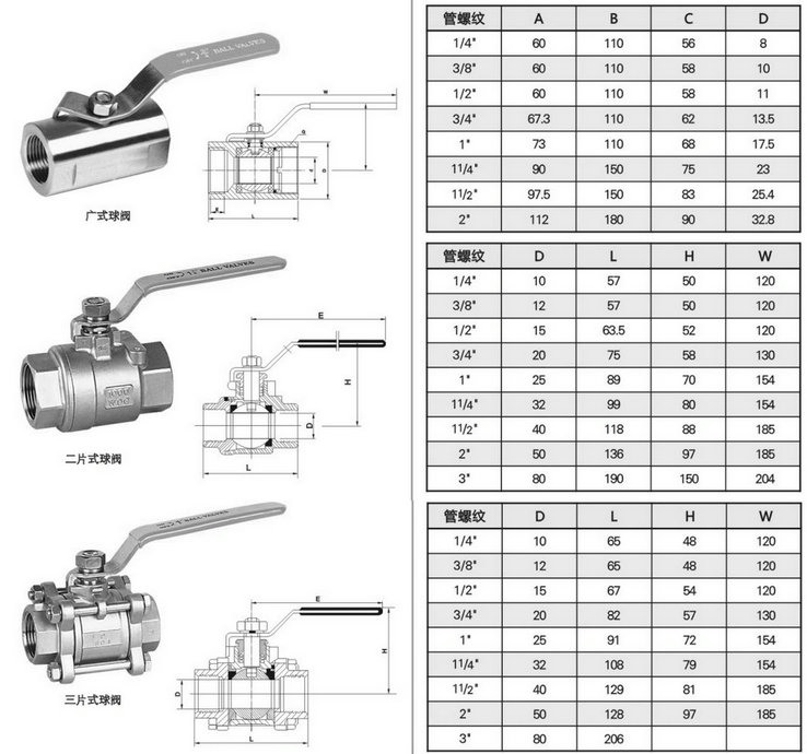 內(nèi)螺紋球閥,Q11F不銹鋼內(nèi)螺紋球閥技術參數(shù)尺寸圖: