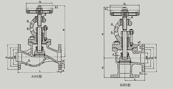 GB/T590-93船用法蘭鑄鐵截止閥 Marine Cast Iron Flanged Globe Valves GB/T591-93船用法蘭鑄鐵截止止回閥 Marine Cast Iron Flanged Stop Check Valves 性能規(guī)范 Technical Data 公稱壓力Nominal Pressure(MPa) 公稱通徑Nominal Diameter(mm) 適用介質(zhì) Applicable Medium 0.6 50~300 海水、淡水、滑油、燃油和 t≤220℃蒸汽 Sea water, Fresh water, Lubricanting oil, Fuel oil, t≤220℃ steam. 1.0 65~250 1 6 20~50 主要零部件材質(zhì) Materials of Main Parts |