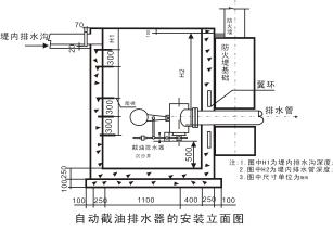 【截油排水閥】安裝 本產(chǎn)品直接安裝在油品罐區(qū)沉砂井內(nèi),直接與排水管連接,詳細(xì)尺寸參見(jiàn)中石化工業(yè)通用圖“總圖運(yùn)輸通用圖集”SH104—2006《油品灌區(qū)水封閥安裝圖》. 1,打開(kāi)包裝,按裝箱單清點(diǎn)設(shè)備; 2,先將出水筒法蘭與排水管彎頭下部法蘭連接: 3,將浮筒連接在水筒上; 4,安裝閥芯和杠桿連接浮筒與杠桿之間的撐桿; 5,安裝配重后即行投入使用; 6,請(qǐng)按以下視圖安裝: