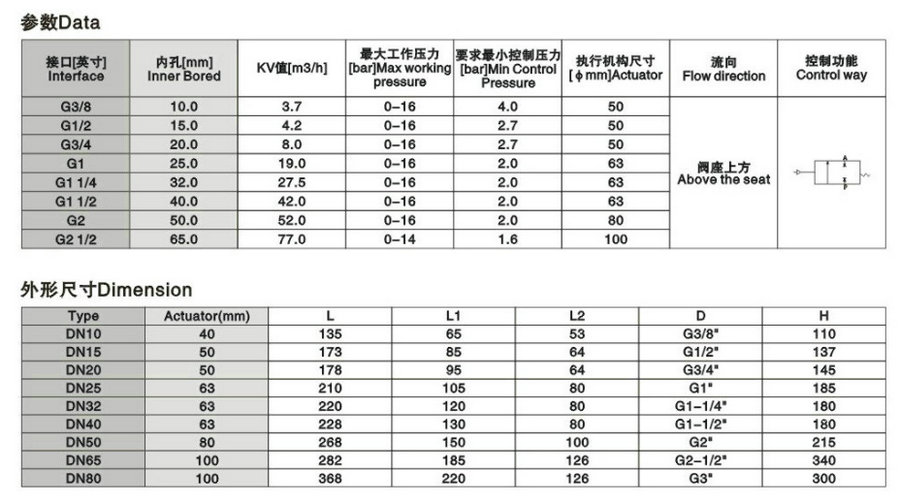 氣動(dòng)角座閥,螺紋氣動(dòng)角座閥尺寸圖: