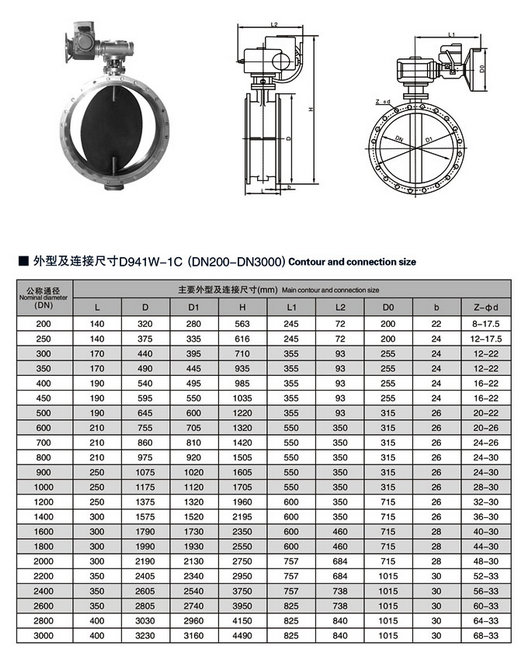 電動(dòng)通風(fēng)蝶閥,D941W電動(dòng)通風(fēng)蝶閥參數(shù)尺寸圖: